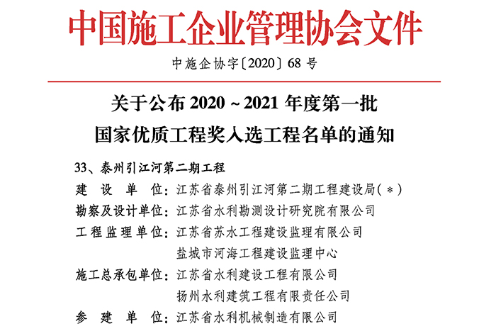 2020-2021年度第一批國家優(yōu)質(zhì)工程獎(jiǎng)